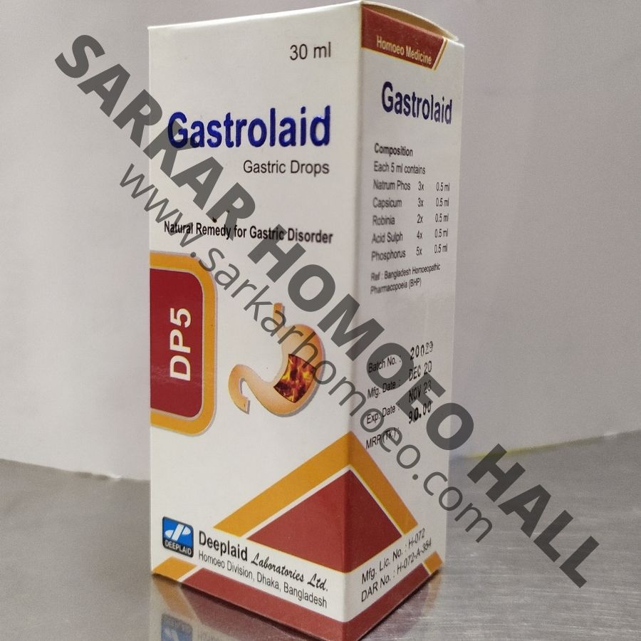 Gastrolaid Drops is a homoeopathic combination medicine prepared by combination of five medications such as Natrum Phos, Capsicum, Robinia, Acid Sulph, Phosphorus. It is used hyper-acidity, heart burn. The ingredients of Gastrolaid particularly effective in flatulence, Peptic Ulcer, Sour eructation etc. The important role of components of Gastrolaid are described below: